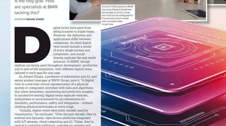 Digital Twins have evolved from simple visualization tools into intelligent, data-driven systems that replicate real-world behavior. Digital Twins are used across development, production, and end-of-life simulation, enabling real-time validation, predictive insights, and continuous optimization.